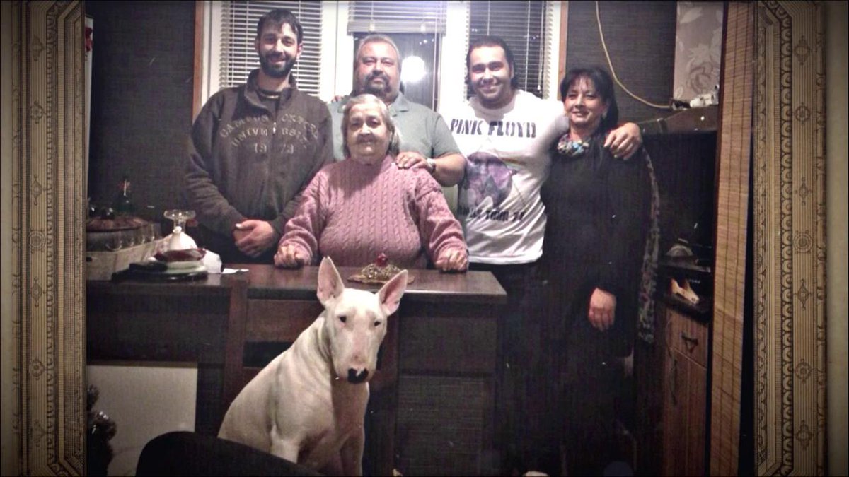 Но и это ещё не всё. Русев показывает нам своего брата — бородатого повара с татухами. А потом бабушку («babushka», как сказал сам Русев). А на фото с бабушкой ещё и собака Магуэрта. А это двоюродный брат футболист.